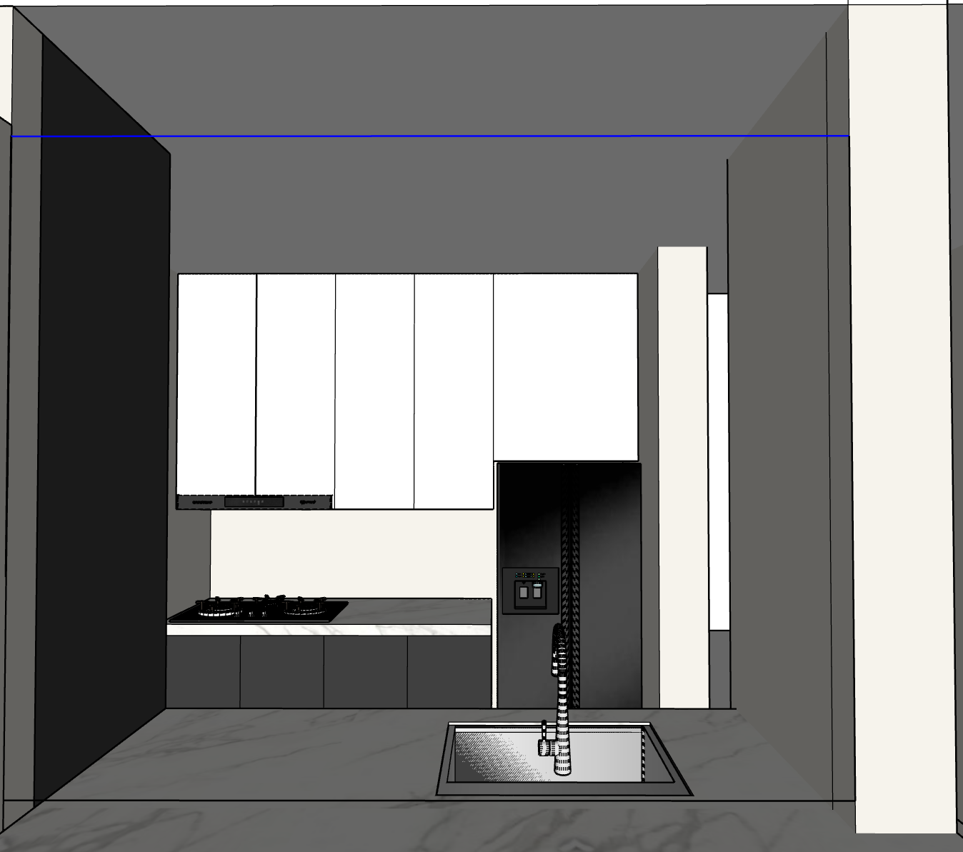 there s actually a black frame glass infront the sink