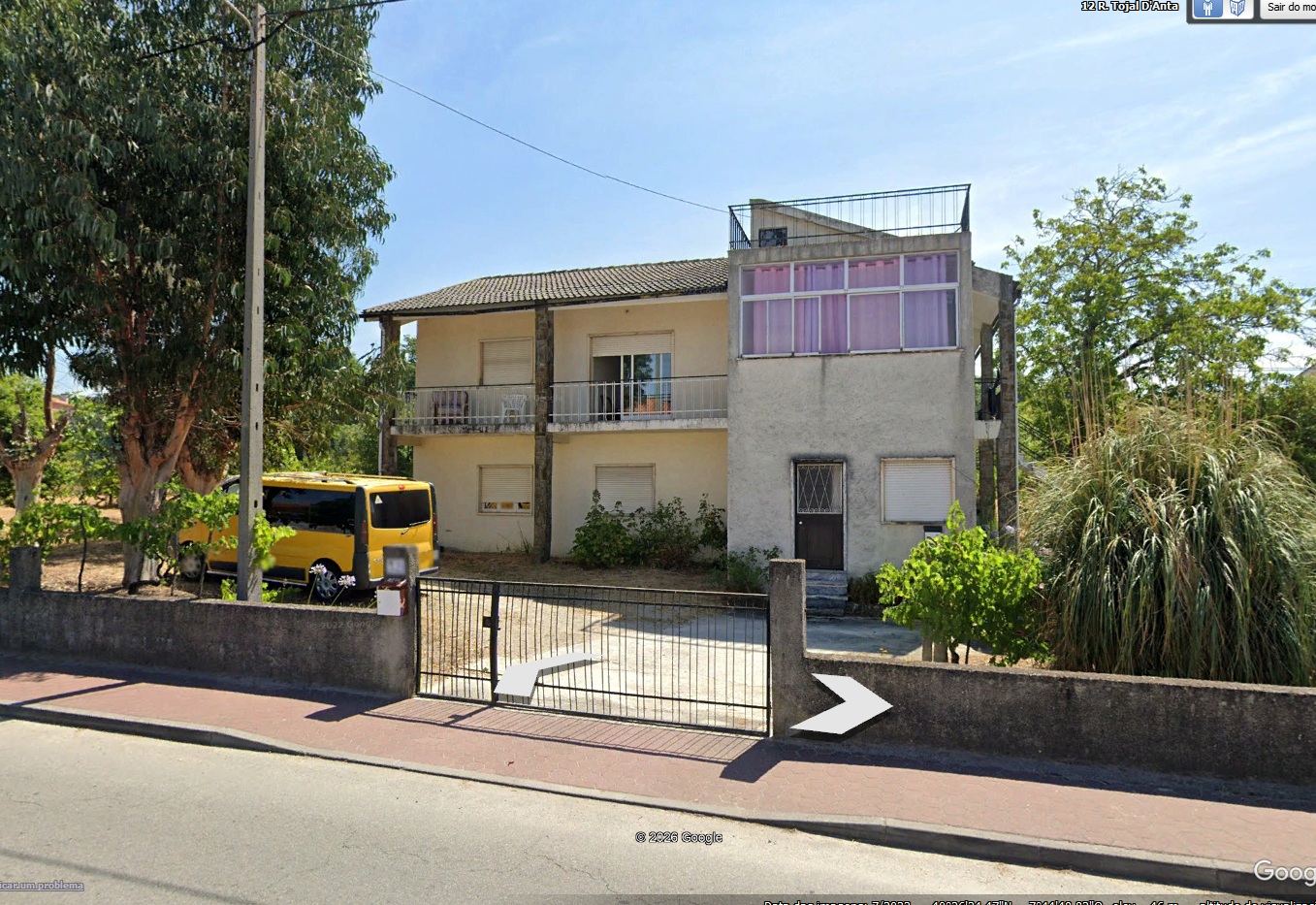 editar a foto para modernizar a fachada de uma moradia dos anos 80 mantendo a estrutura original pintar a fachada em tons claros e modernos branco bege ou cinza com detalhes em antracite ou madeira atualizar visualmente caixilharias guardas e port o para um estilo contempor neo simplificar linhas e remover elementos datados resultado fotorrealista elegante realista para obra real com aspeto atual e valoriza o imobili ria
