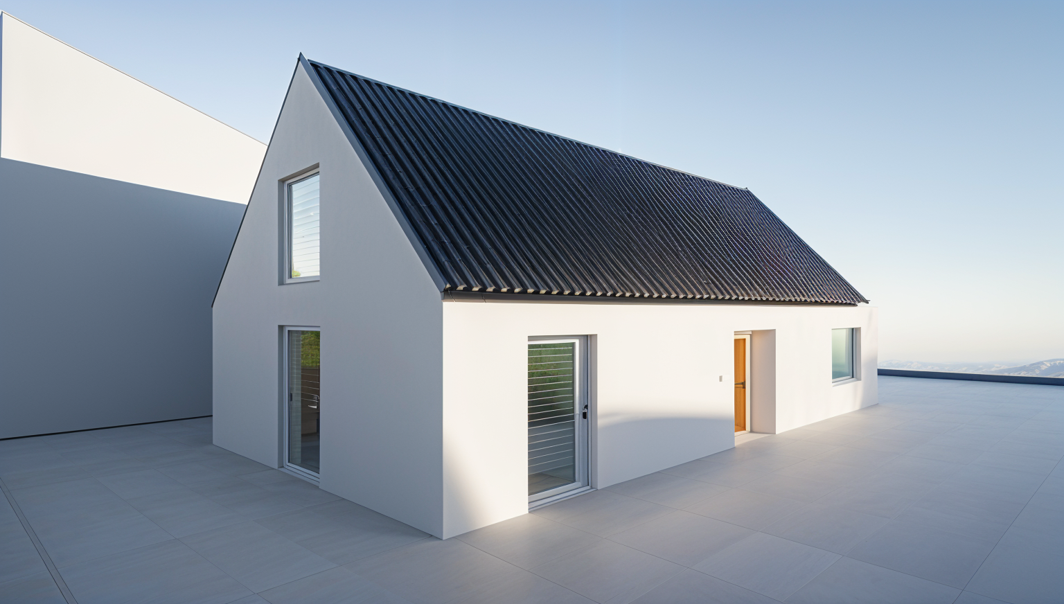 hd realistic photograph of a cabin on a farm wroofing is black metal roofing