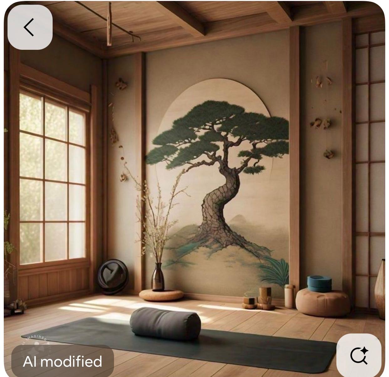 add a recliner remove window add japanese screen with paper with artificial light passing through paper add a water fountain
