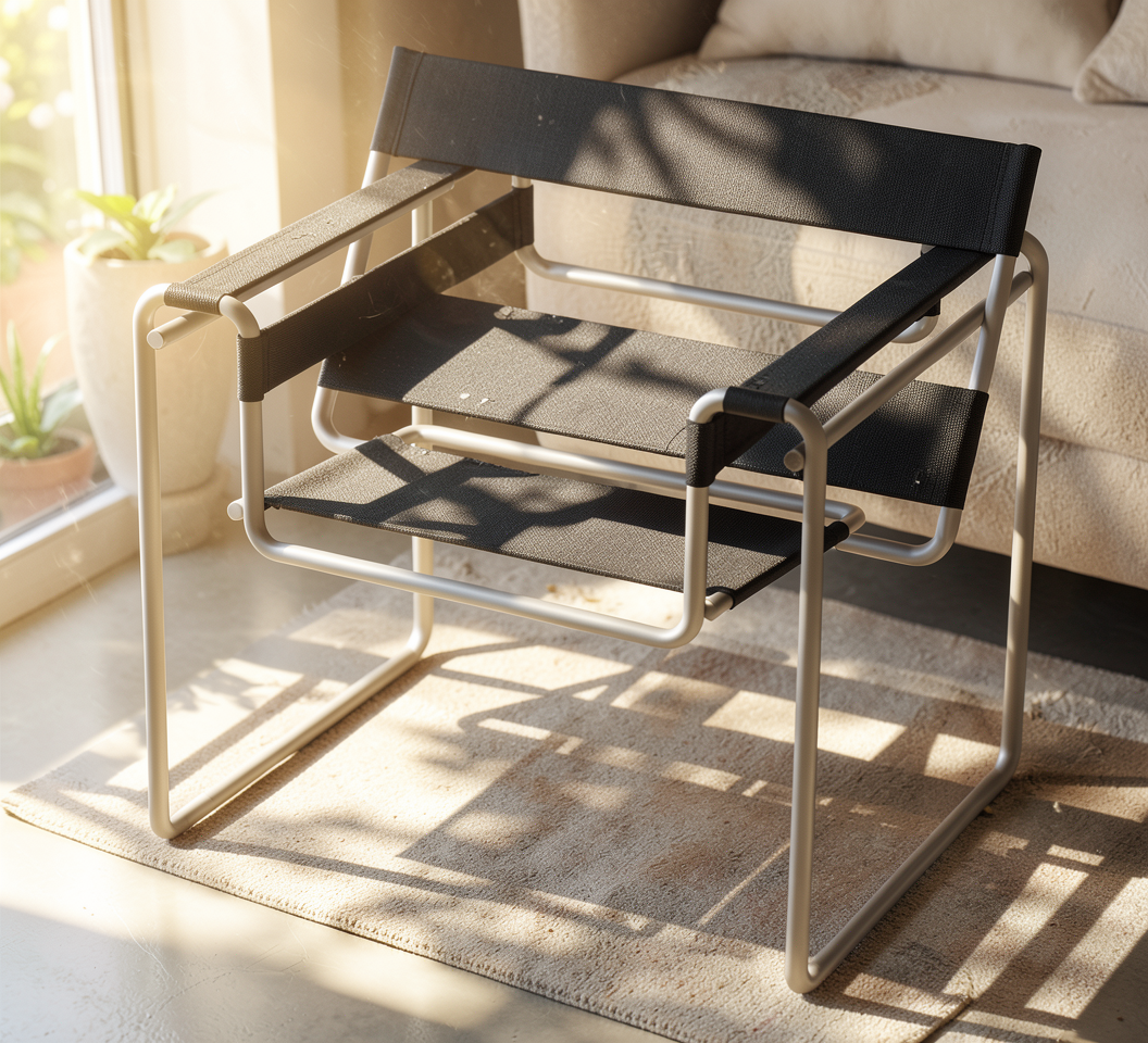 modern minimalist bedroom with a serene atmosphere light beige walls create a soft backdrop for an accent wall with abstract geometric patterns in beige and white the floor is light wood complementing the neutral tones the bed features dark gray bedding with matching pillows a sleek desk with a black chair is against a very deep dark dark grey wall bookshelves hold neatly arranged books and the color are light white oak ambient lighting enhances the cozy atmosphere a modern black lamp sits on a light white oak wood nightstand an abstract black and white painting adorns the wall adding artistic flair