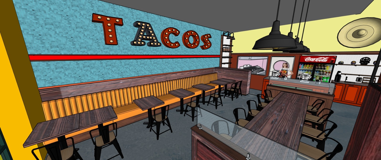 la iluminaci n natural muy suave entra desde la ventana que esta al lado izquierdo de la palabra tacos y que va desde el piso hasta el techo y esta ubicado en katy texas