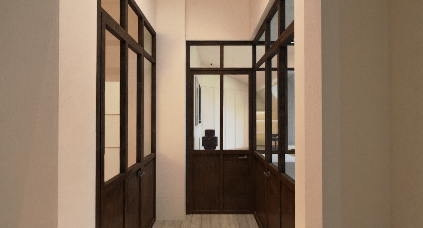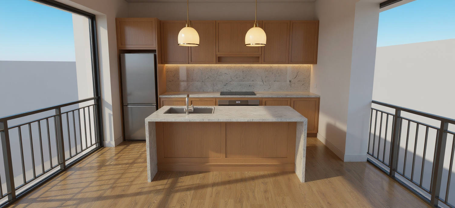 render elevationin a modern style with horizontal nickle gap siding on lower area and architectural panels on seconfd level with modern windows in black aluminum frames