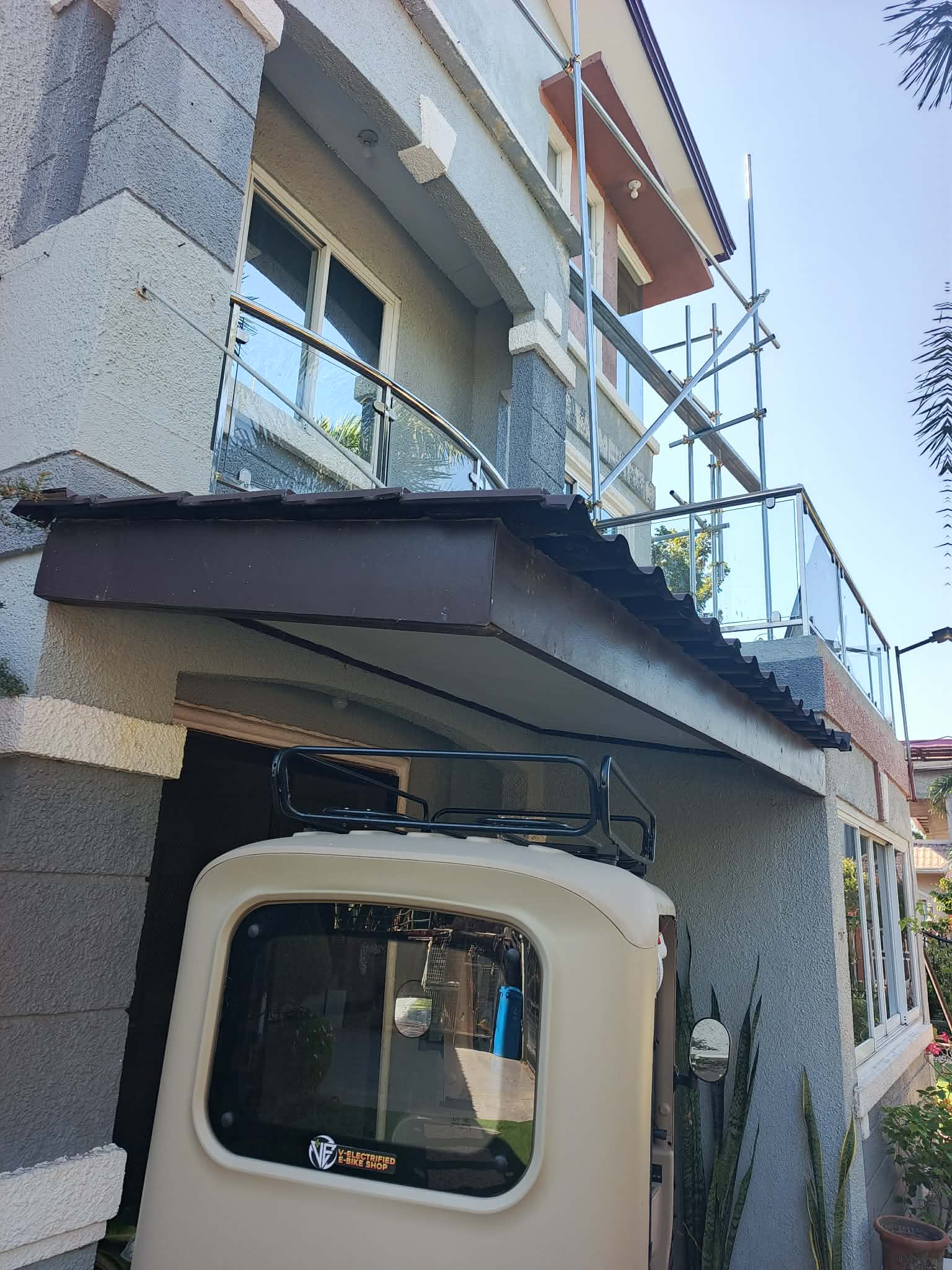 exterior shot can you replace the brown roofing and change it into brown polycarbonate roofing like in the reference