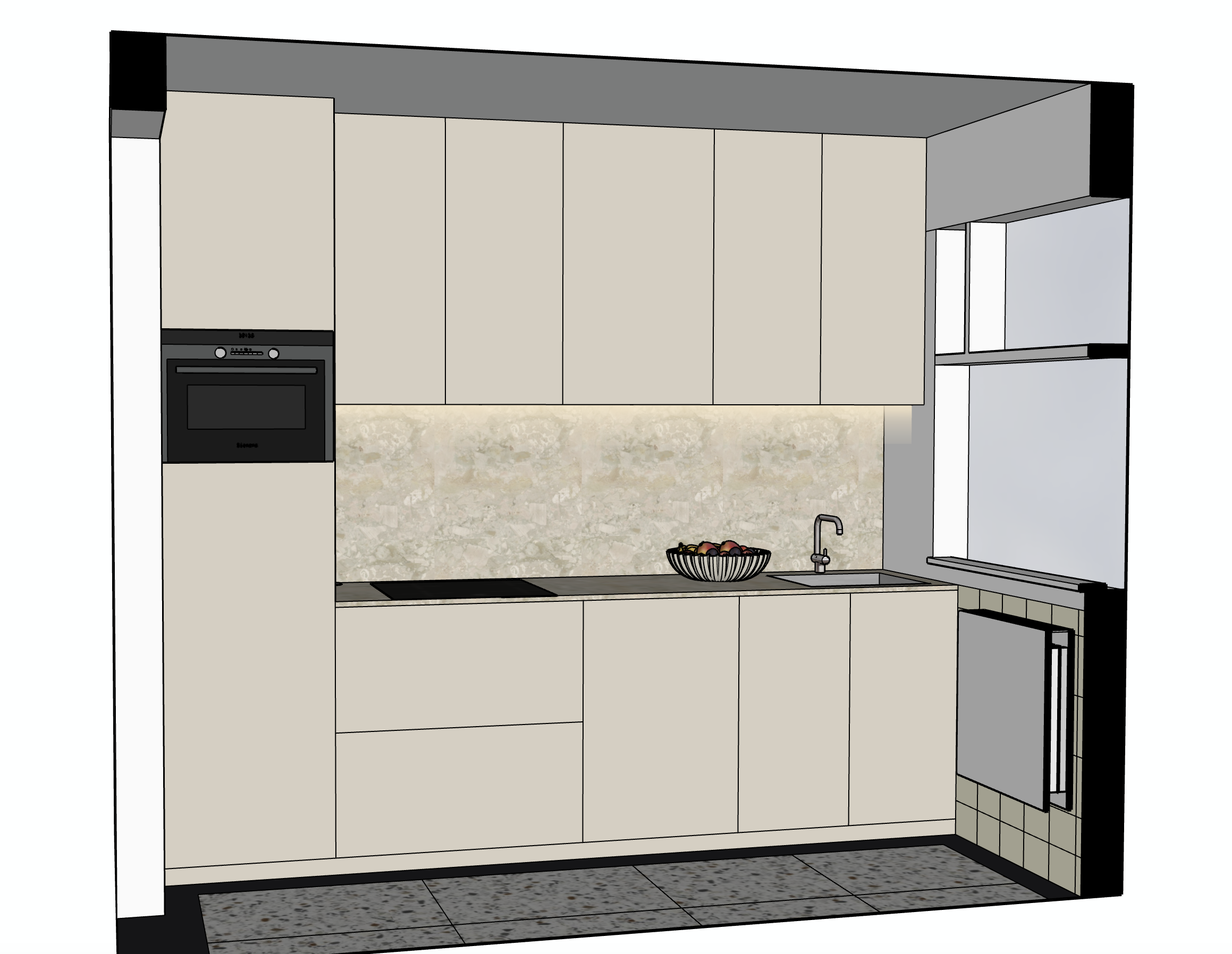 floor is terrazzo kitchen is cashmere beige