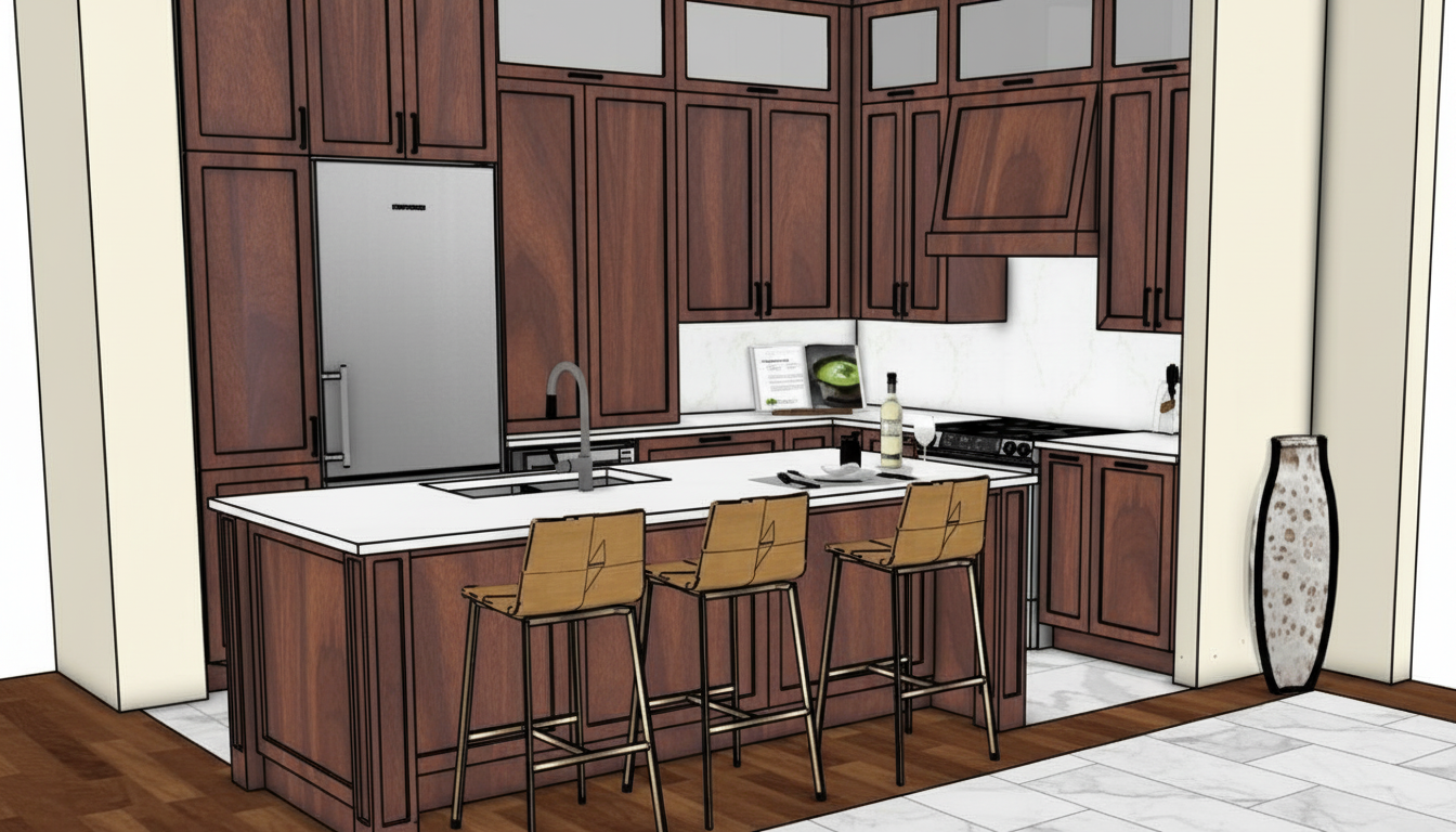 scandinavian style bungalow with cedar wood window and door trims on a overcast california weather and native california landscape with wall sconce lights at doors lights coming out of windows and doors