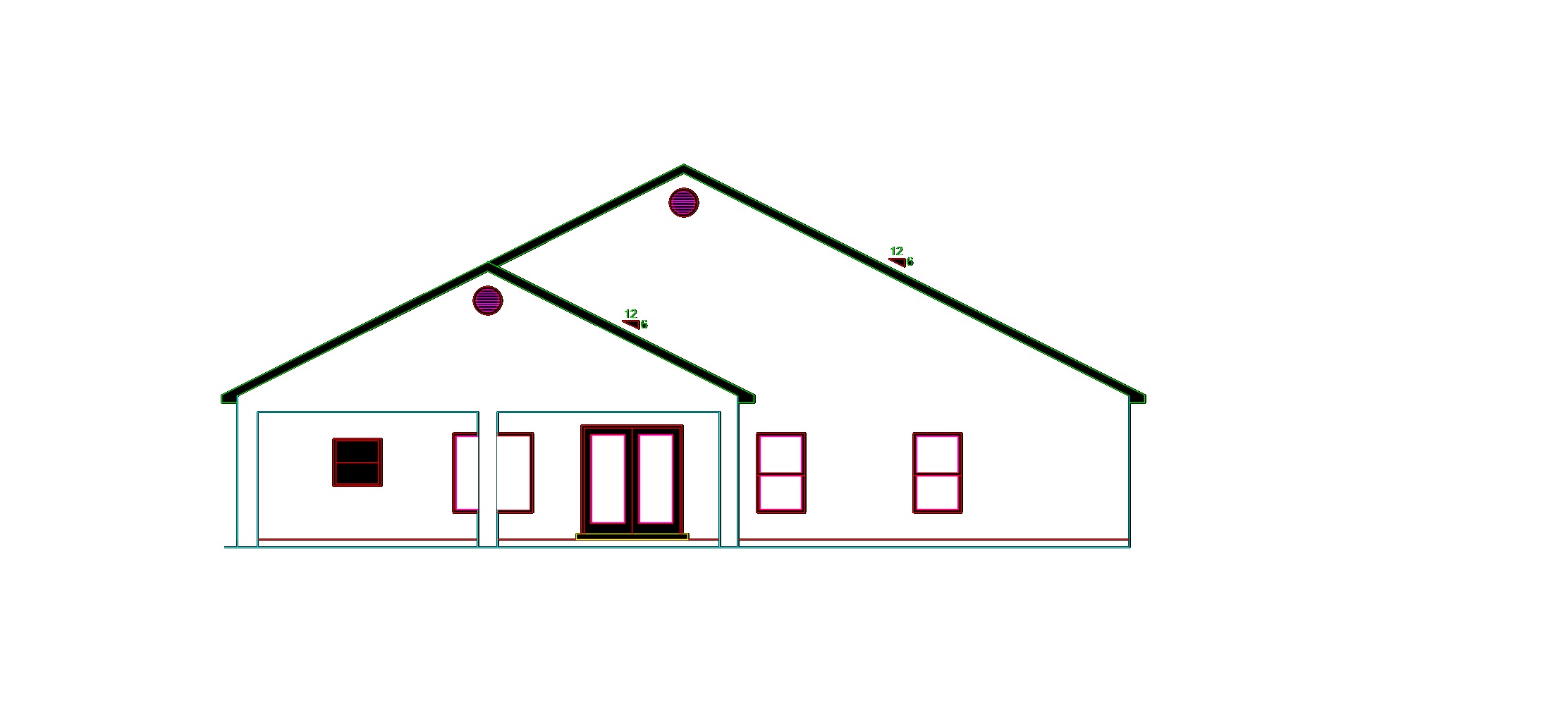 render exaclty elevation render with light inside with white stucco on front walls blck trim roof