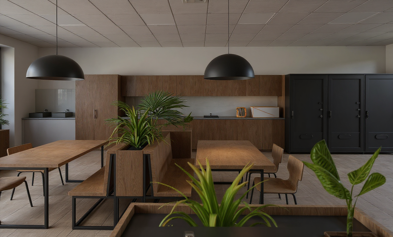 the dark grey vertical rectangles on the right are vending machines with drinks please rerender