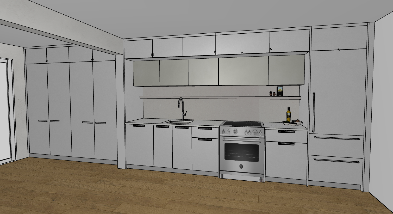 do not let the lighting do weird things it makes it hard to read the cabinetry properly no handles on top row of cabinets