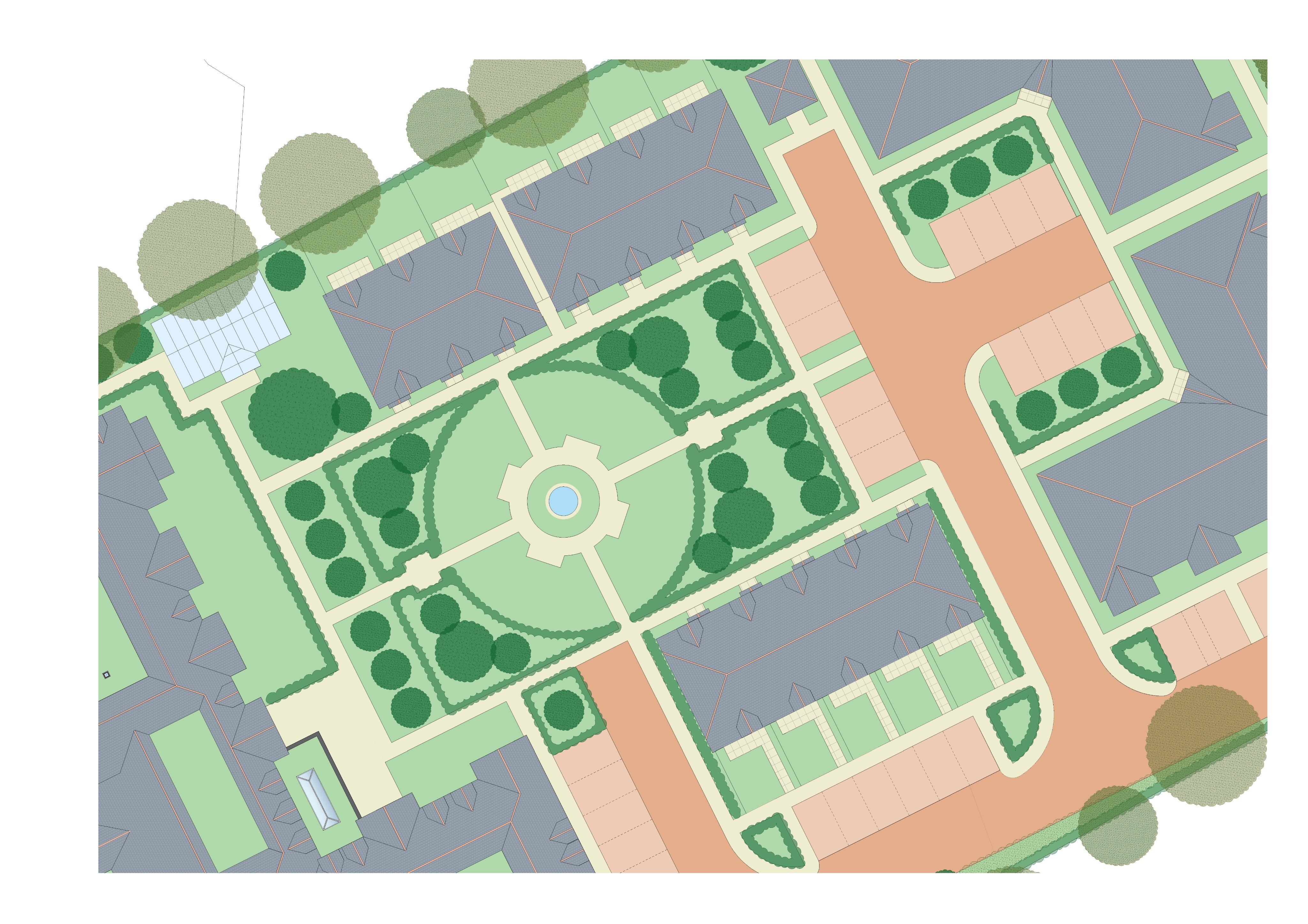 this is a coomunal court yard garden the lanscaping in the courtyard should be low leverl planting this is a top down image site plan