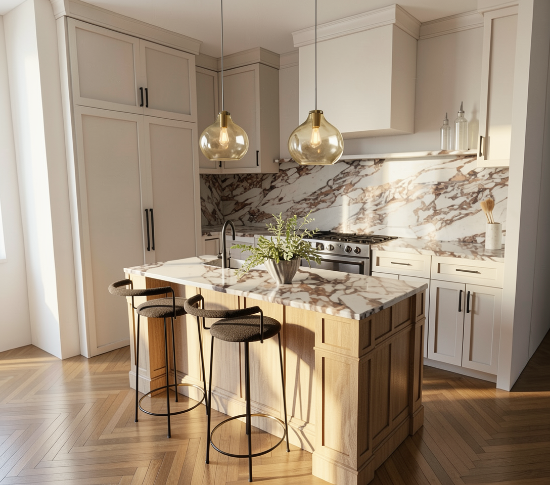 make this into a photo realistic rendering with the black veined marble