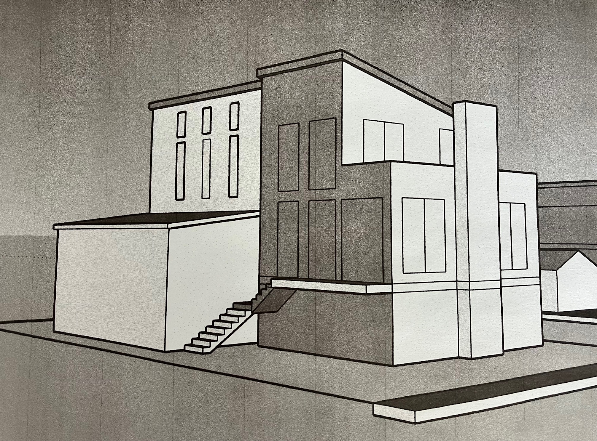 contemporary exterior shot cedar wood vertical siding siding metal roof stone foundation black window trim and black door trim house is around water and boats architecture
