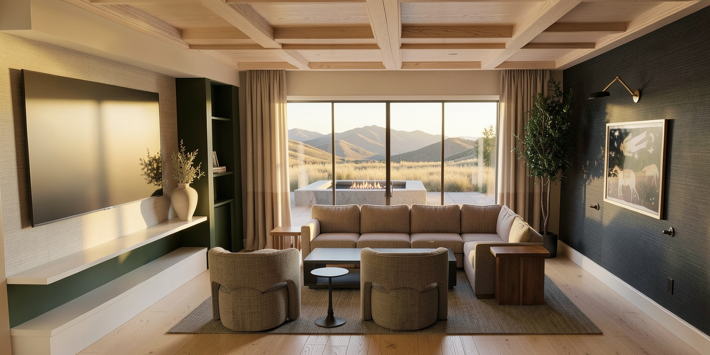 kitchen render using the same original materials and design do not change the layout proportions camera angle or material selection all kitchen cabinets must remain in the same warm light grey color tone consistent throughout the kitchen enhance lighting only to achieve a brighter well balanced kitchen use soft natural interior lighting with realistic brightness improve realism with natural looking light accurate shadows and realistic material textures maintain a clean professional photorealistic architectural render