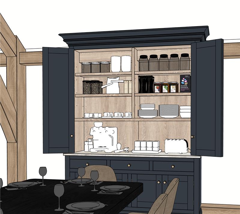 luxury bespoke kitchen breakfast bifold cabinet with coffee machine and toaster inside keep design as it is