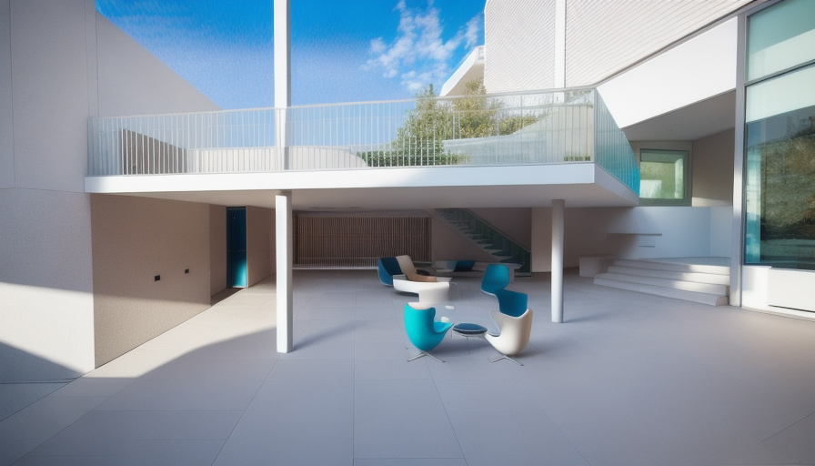 coastal texas native vegetation driveway only in front of garage doors with cars space above gate in center open to back yard beyond light coastal blue green colors garage doors balcony handrail white like light trim