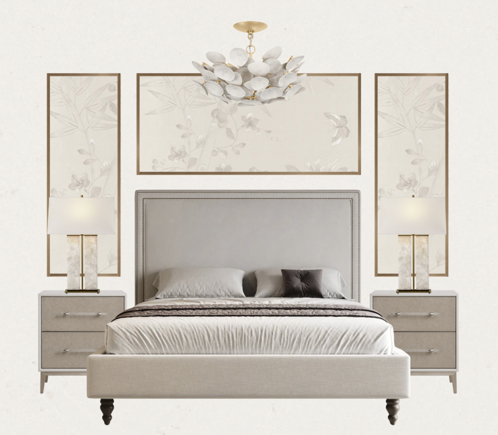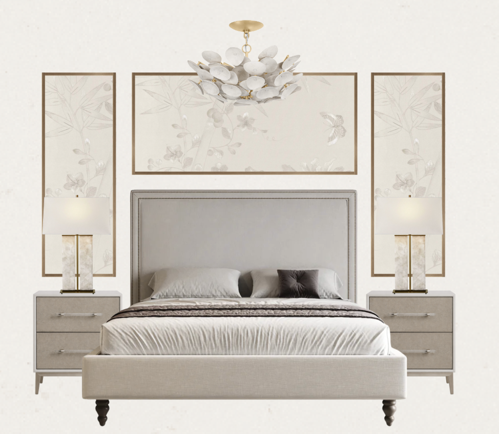 exterior shot this is a master bedroom moodboard i want to create a 3d render keep walls a neutral white colour