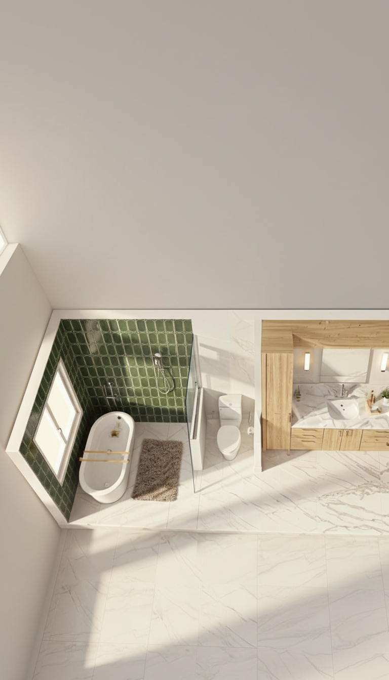 contemporary architecture of a mixed use building featuring natural wood finishes exposed concrete and matte black accents the design showcases clean minimalist lines with large floor to ceiling windows and a fully transparent glass upper roof allowing abundant natural light to flood the interior the project is set within a lush tropical environment surrounded by dense vegetation tall trees and large leaf plants the composition emphasizes a strong indoor outdoor connection with open spaces soft shadows and natural ventilation warm lighting highly realistic atmosphere high quality architectural render modern design focus on material textures architectural photography style 4k ultra realistic