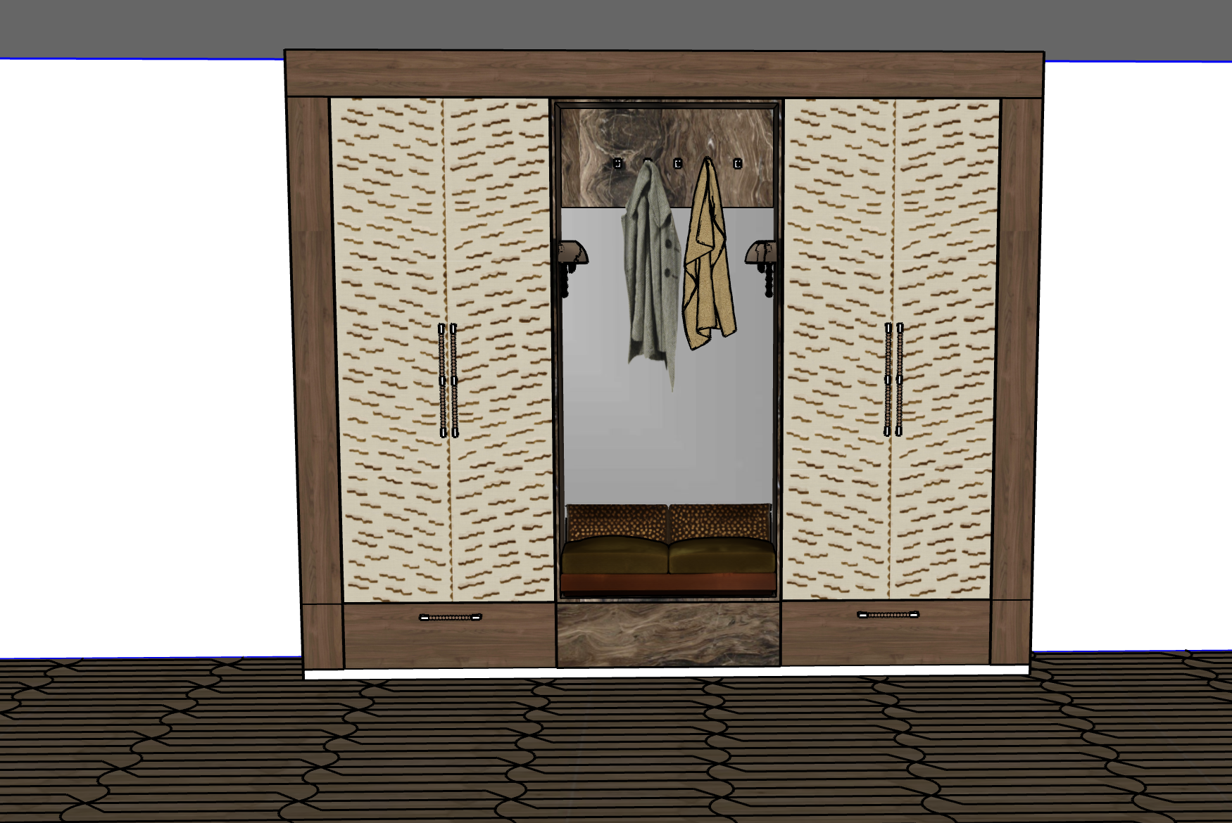 the floor is matt finish not glossy lower ceiling to flush with cabinet