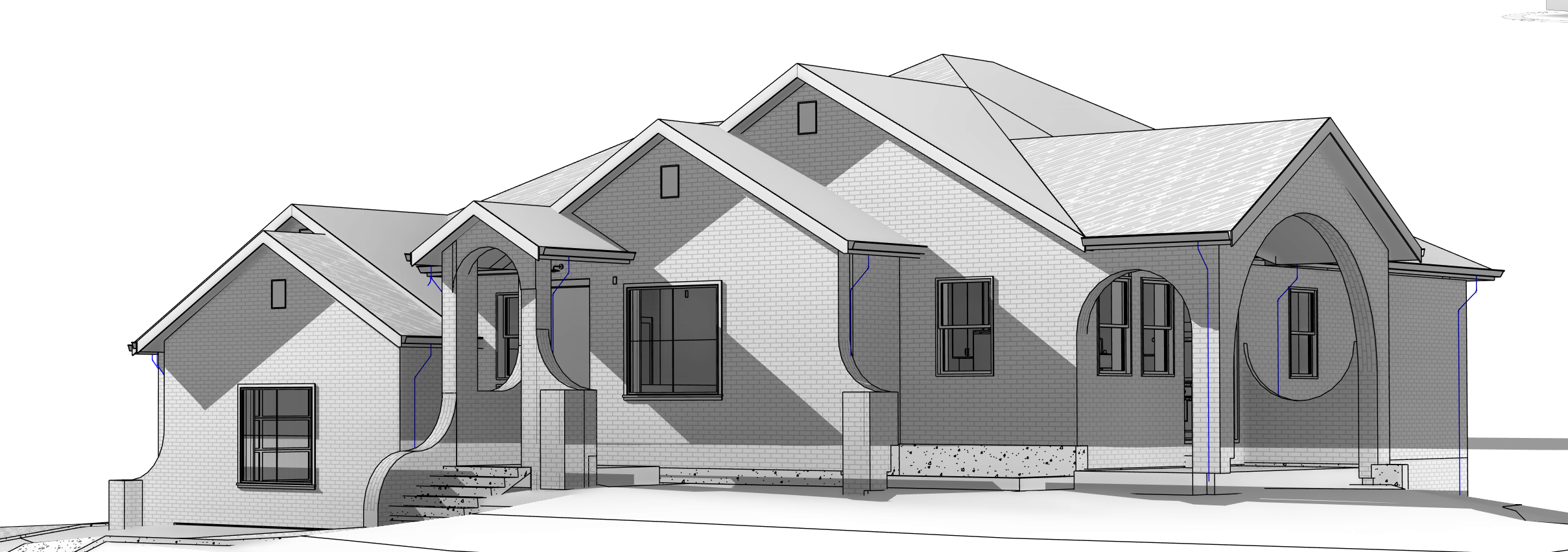 render this house with red brick and a dark roof with grass and xeriscaping out front