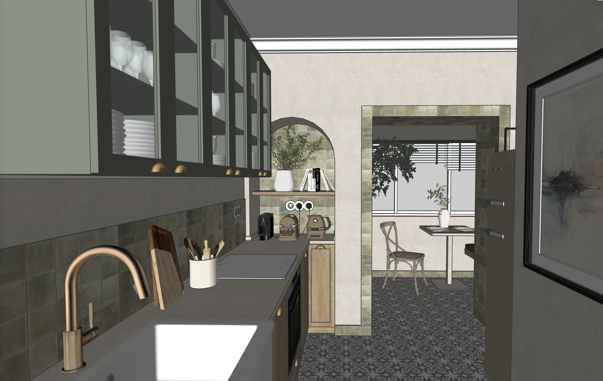 ne change rien rajoute juste de la lumi re naturelle qui rentre de la fenetre et de la lumi re chaleureuse sous les l tag re de la niche et sous les placards hauts