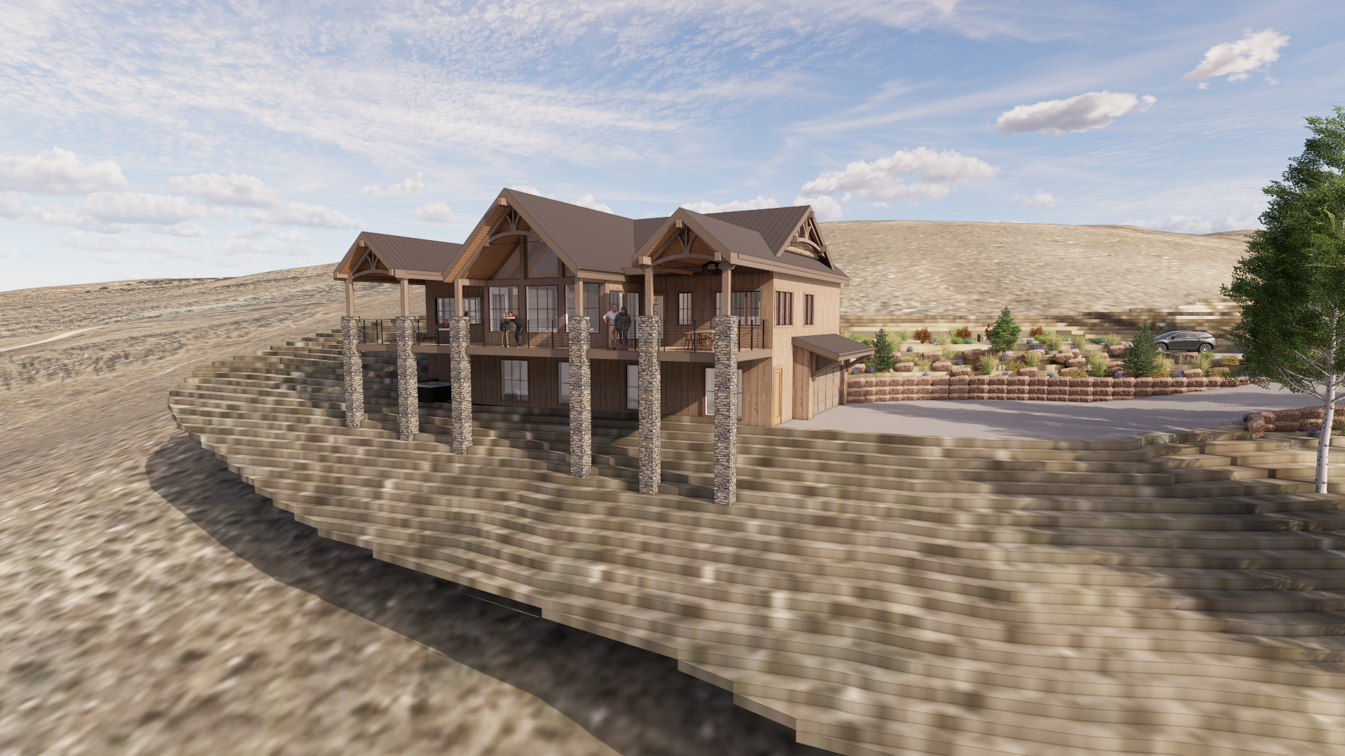 mountain home on hillside small rolling hill mountians with pine trees and aspen trees