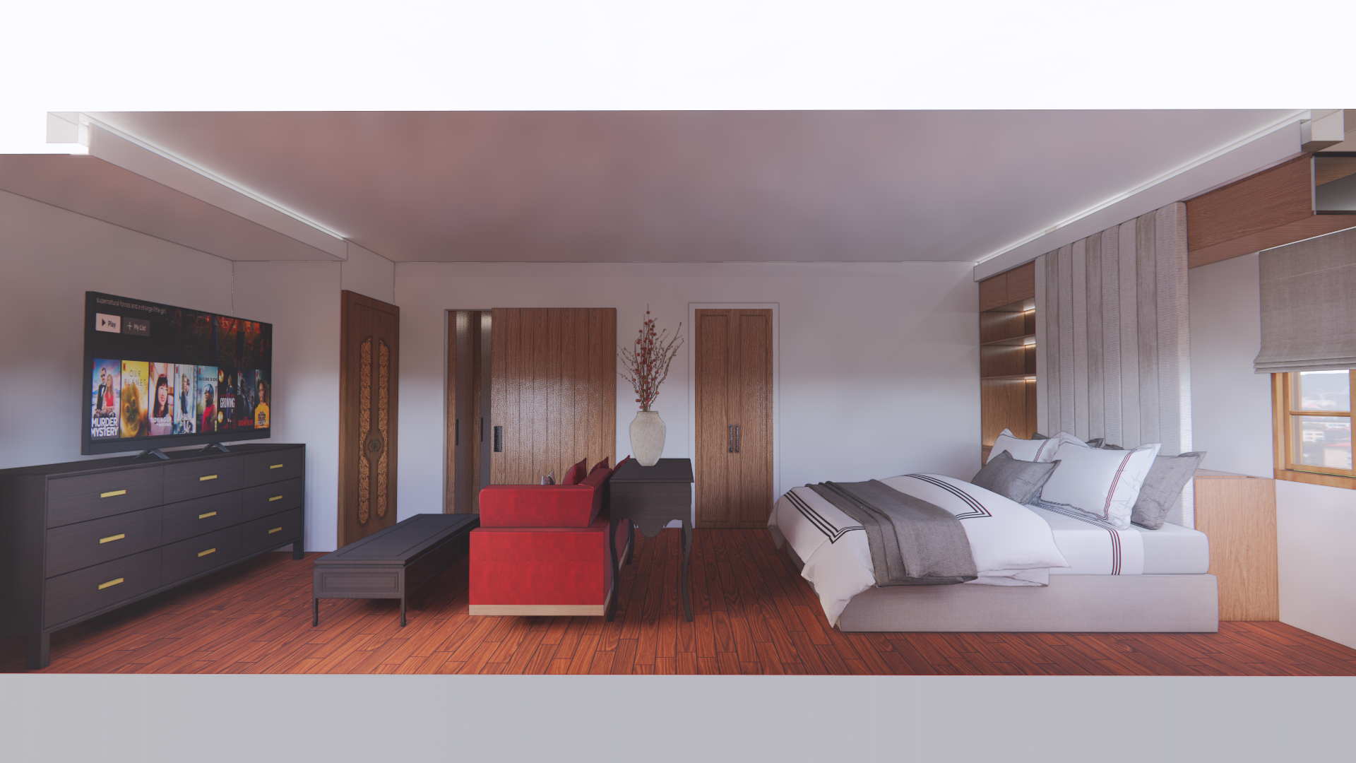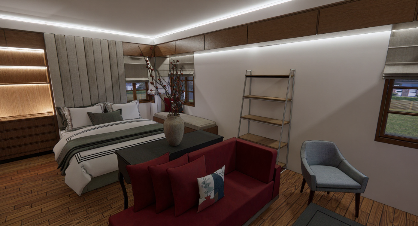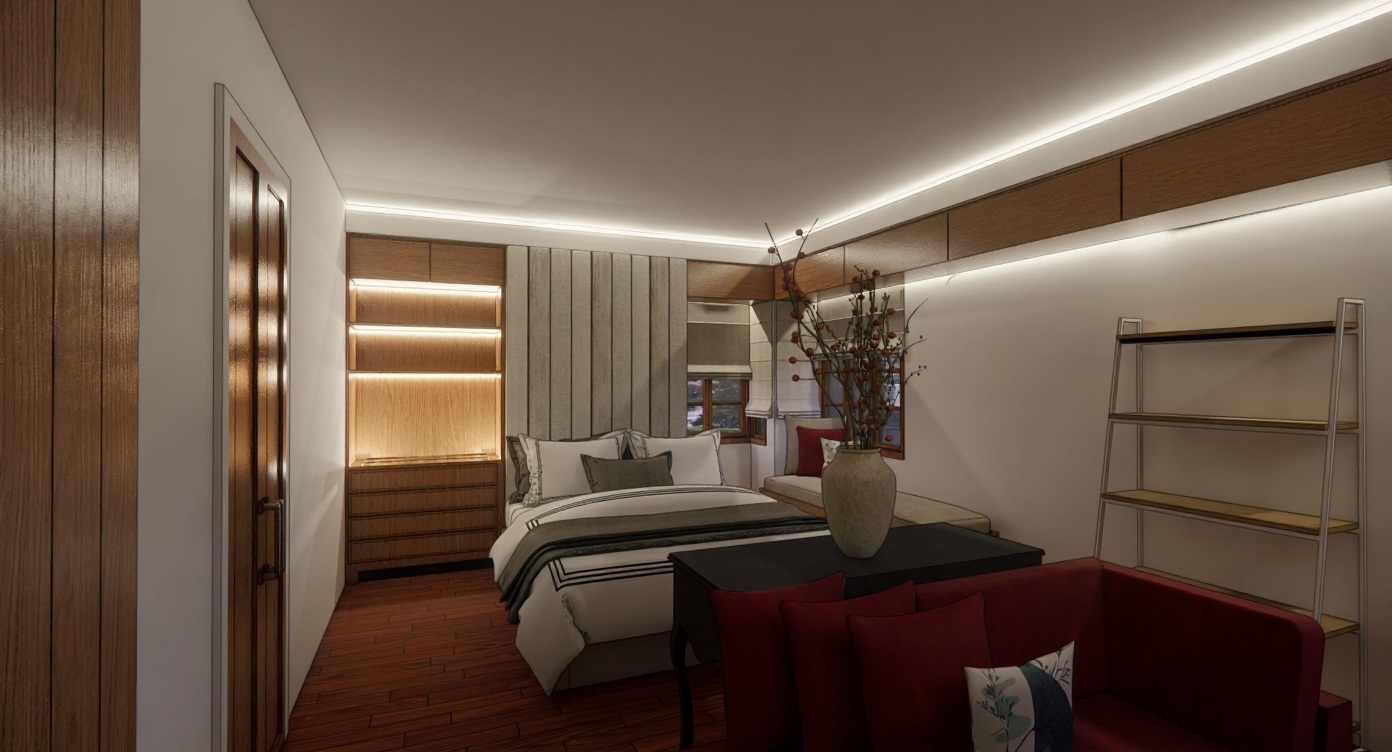 enhance the original living room render without changing any existing elements composition or furniture only adjust materials lighting and color tones to match the warm contemporary mood board apply soft natural morning light with gentle highlights and realistic shadows refine materials to have matte beige walls walnut toned wood surfaces and linen or wool textured fabrics keep the palette warm and neutral cream sand taupe and caramel hues enhance overall contrast softly for depth while maintaining natural color balance ensure all surfaces show tactile realism and a cozy elegant ambience consistent with the mood board keep reflections subtle lighting cinematic yet natural and atmosphere serene