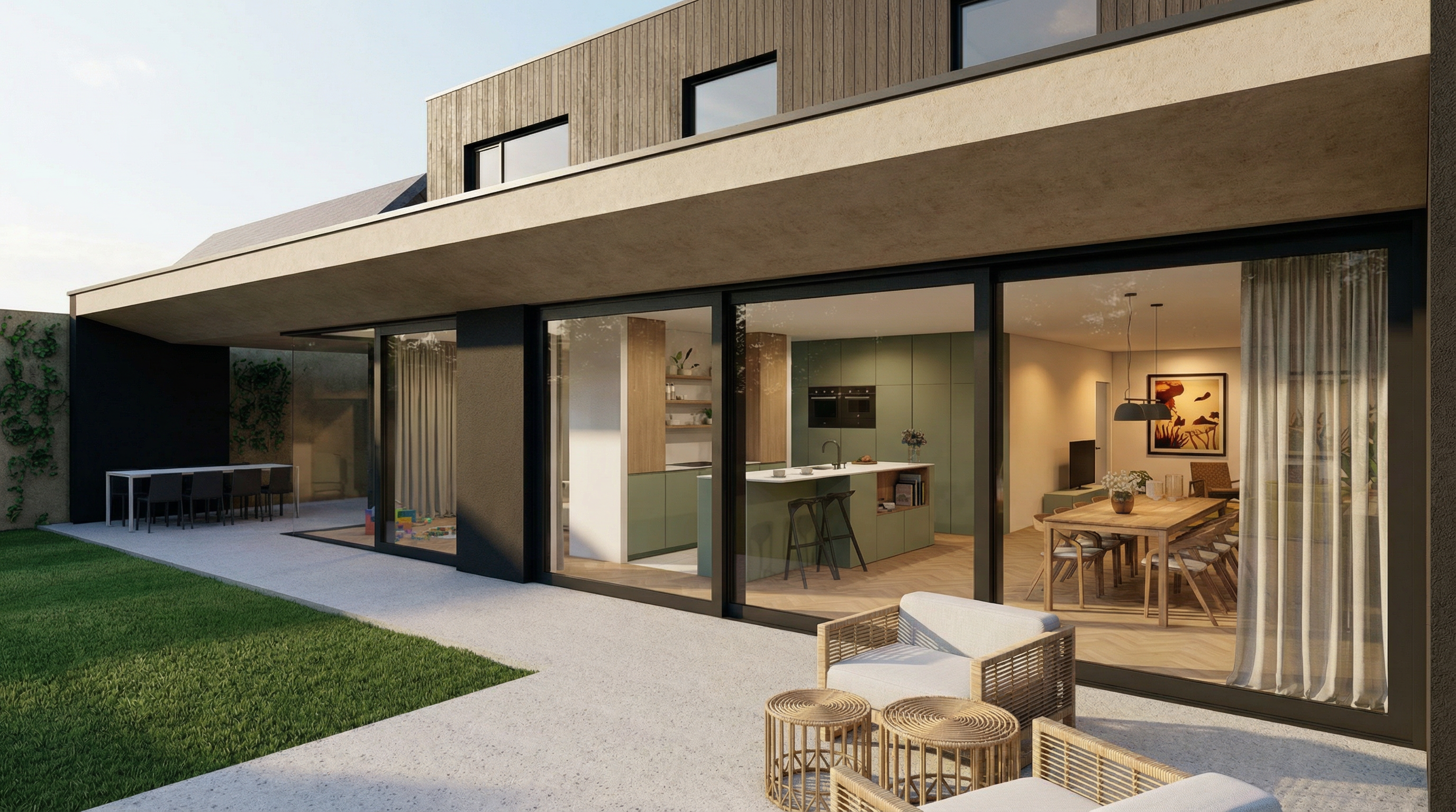 adda rectangular 12 table with chairs in the middle of the room parallel to the windows away from the cabinet wall