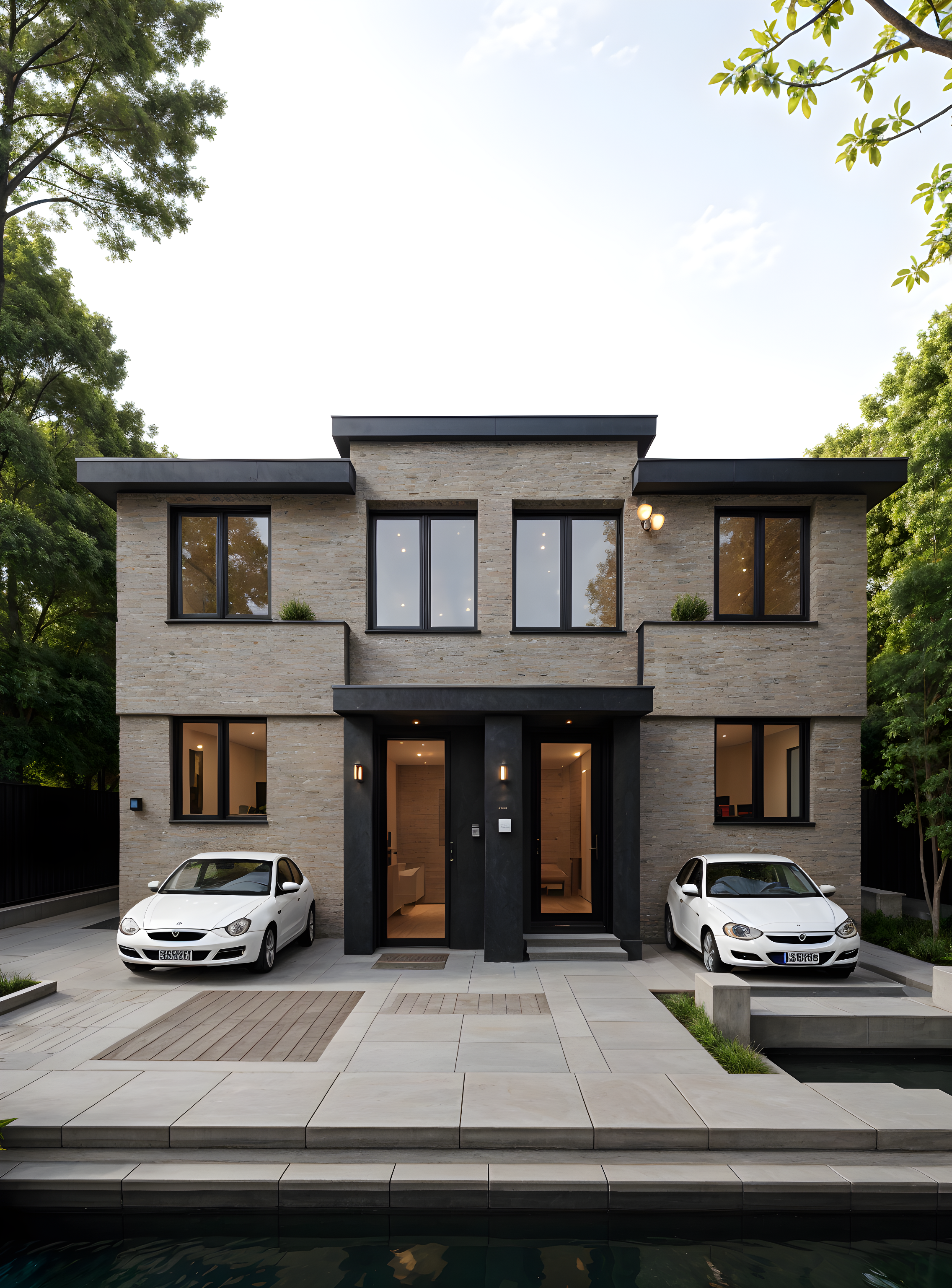 limestone above the doors and change the top windows as juliette windows