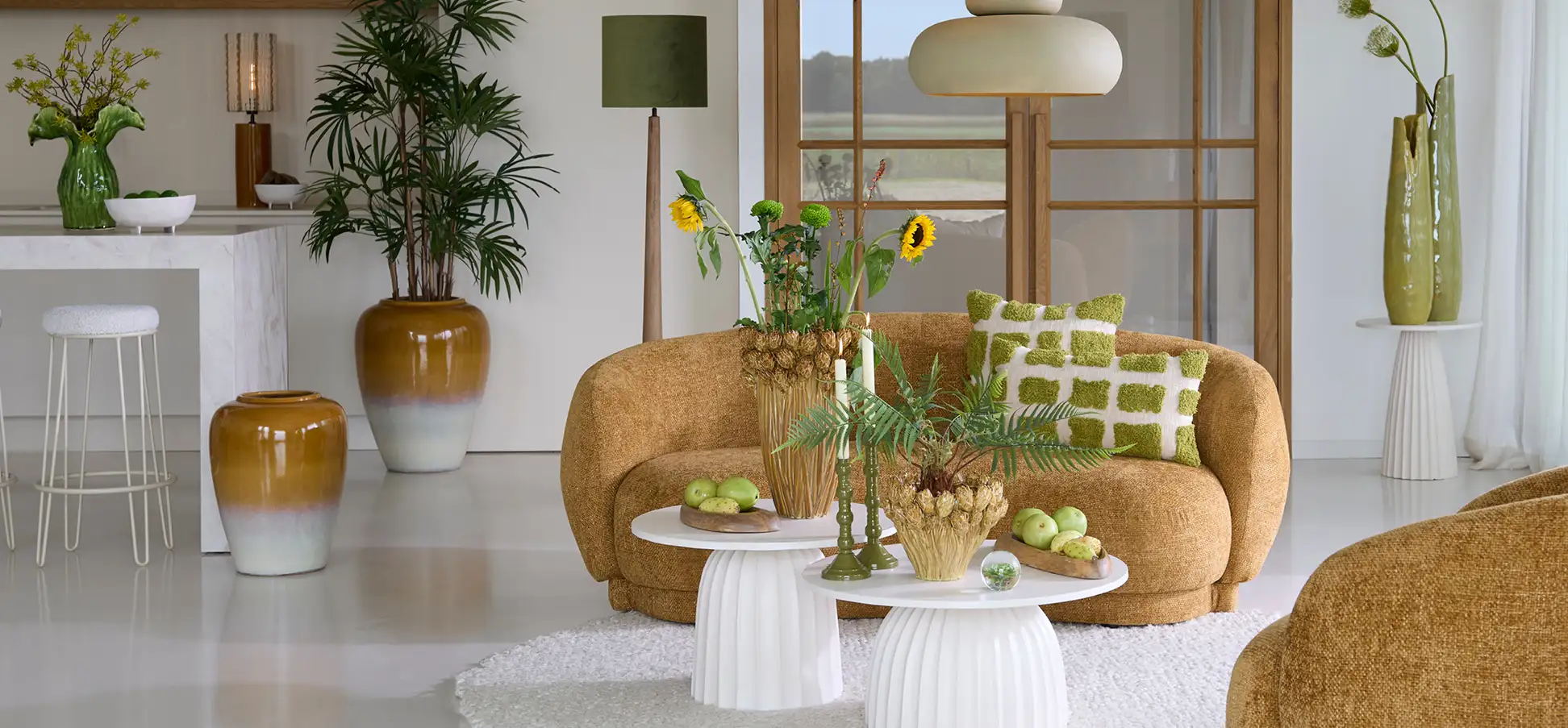 maak een woonkamer met een oker plafond l