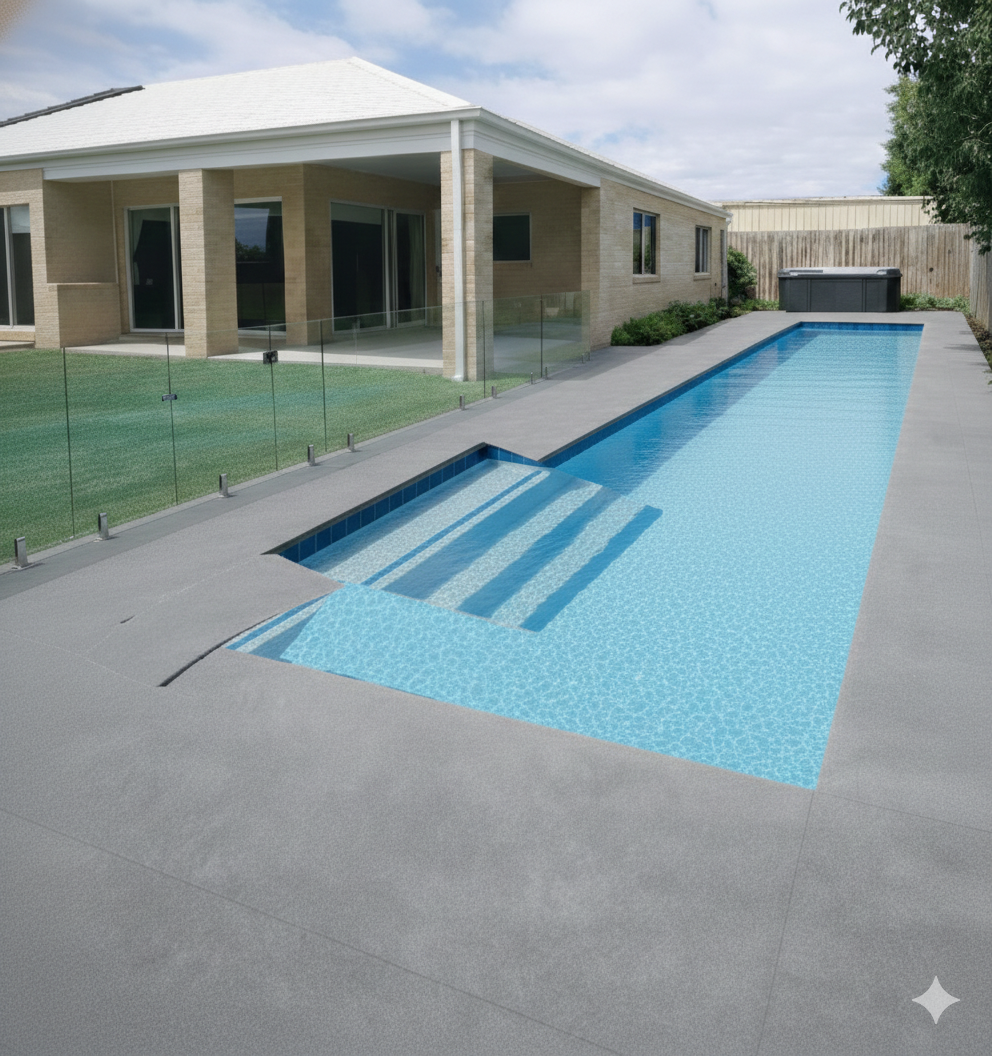 exterior shot redraw this design keeping all of thee elents the same but smoothing out the cropping and cutting and pasting of the pool steps and surrounds
