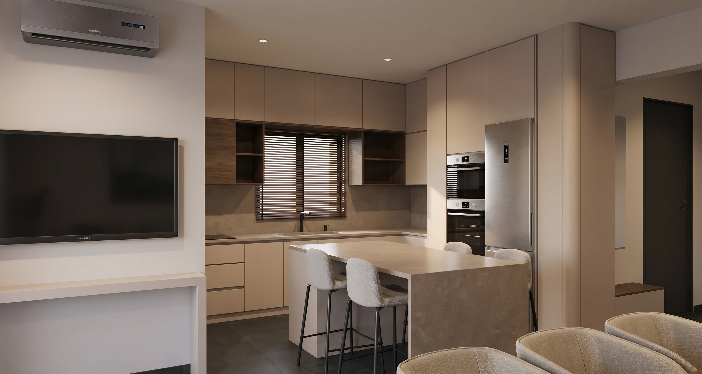 ilumina o natural com o sol refletindo na janela com casas com estilo mediterraneo ao lado do nosso lote