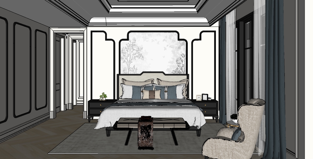 render senyata mungkin tanpa merubah material desain dan warna cat dinding putih warna lis panel klasiknya hitam