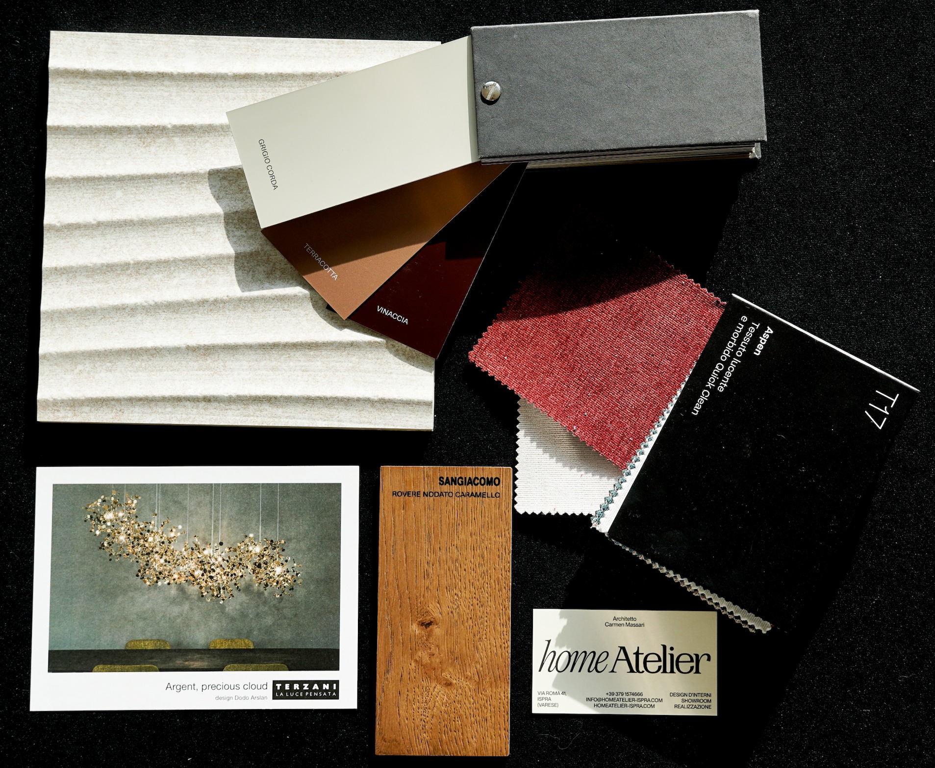 utilizzando i materiali della moodboard realizza un soggiorno living con parete tv