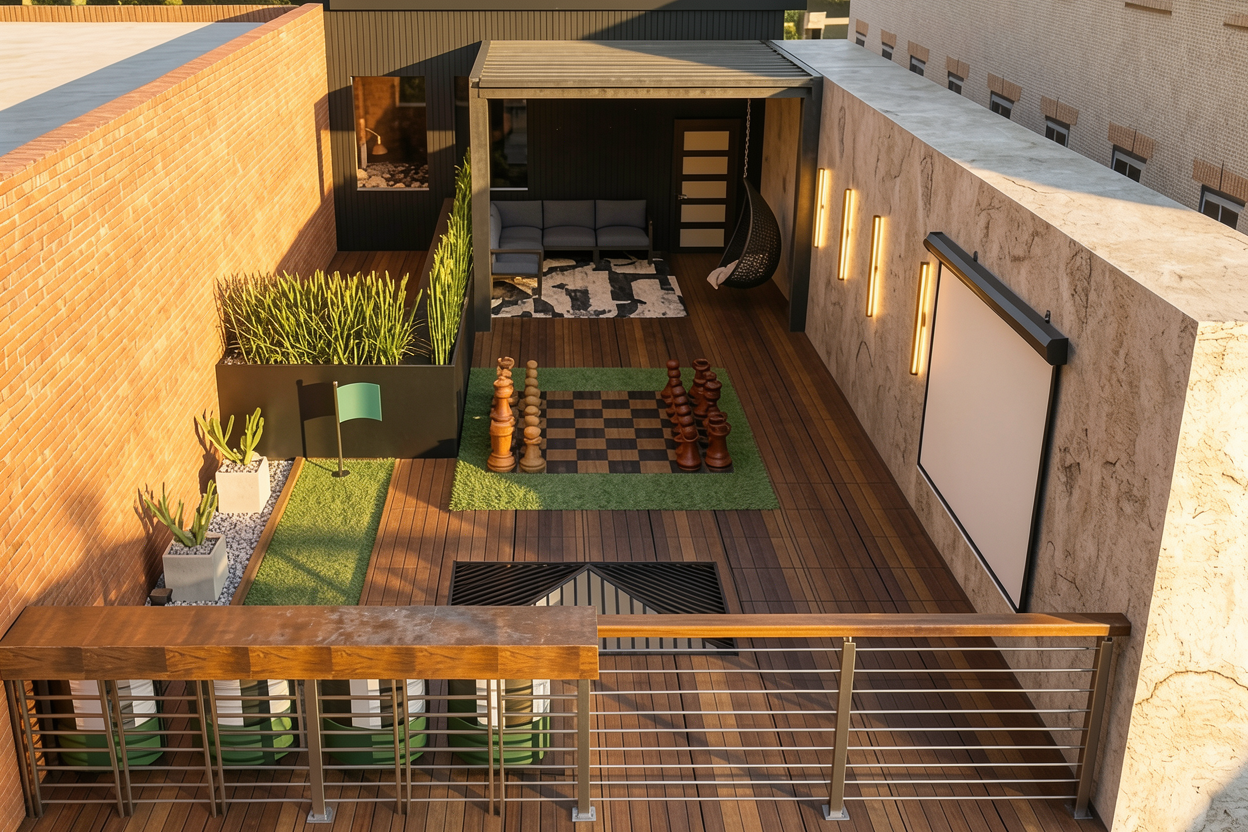 retain structure and make materials look new open field background add grass bush in with flax under windows mid grey cladding