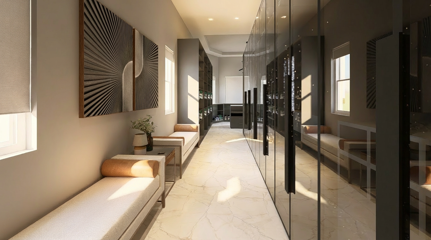 convert this floor plan into a realistic isometric 3d view of a full house show the space from an elevated angle with furniture walls and details visible render a beautiful apartment interior based on a blueprint layout use calming earth tones for the walls like soft beige and sandy taupe incorporate rich wooden textures for the floors and furniture with a warm oak finish create a cozy and inviting atmosphere with ambient lighting in soft white tones use neutral grays and whites for kitchen and bathroom fixtures and add touches of greenery for a natural feel ensure the space feels spacious and serene with a sense of modern elegance throughout the design use the same furniture as shows on the plan do not change the orientation of the floorplan