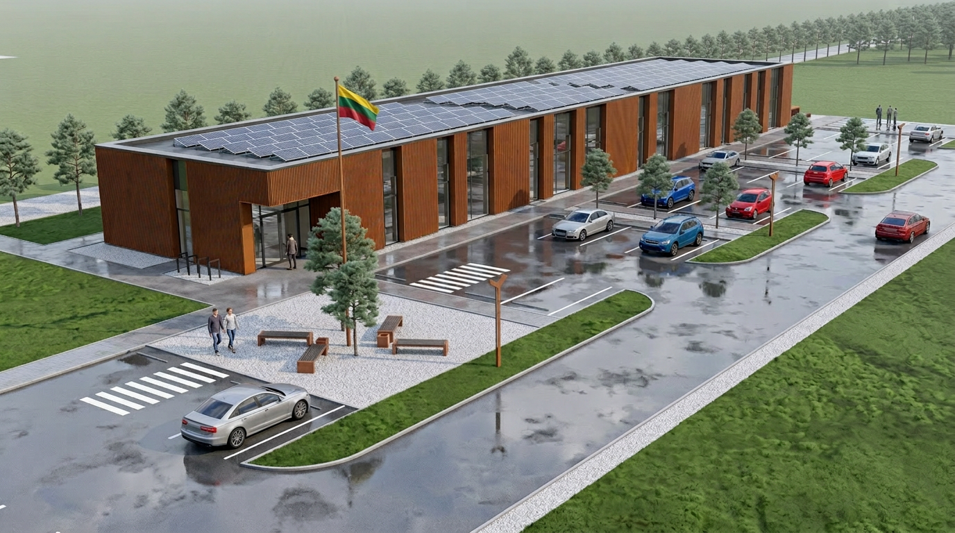 the stone path has to go to building on the left and on the right the garage doors on the two separate objects is white color