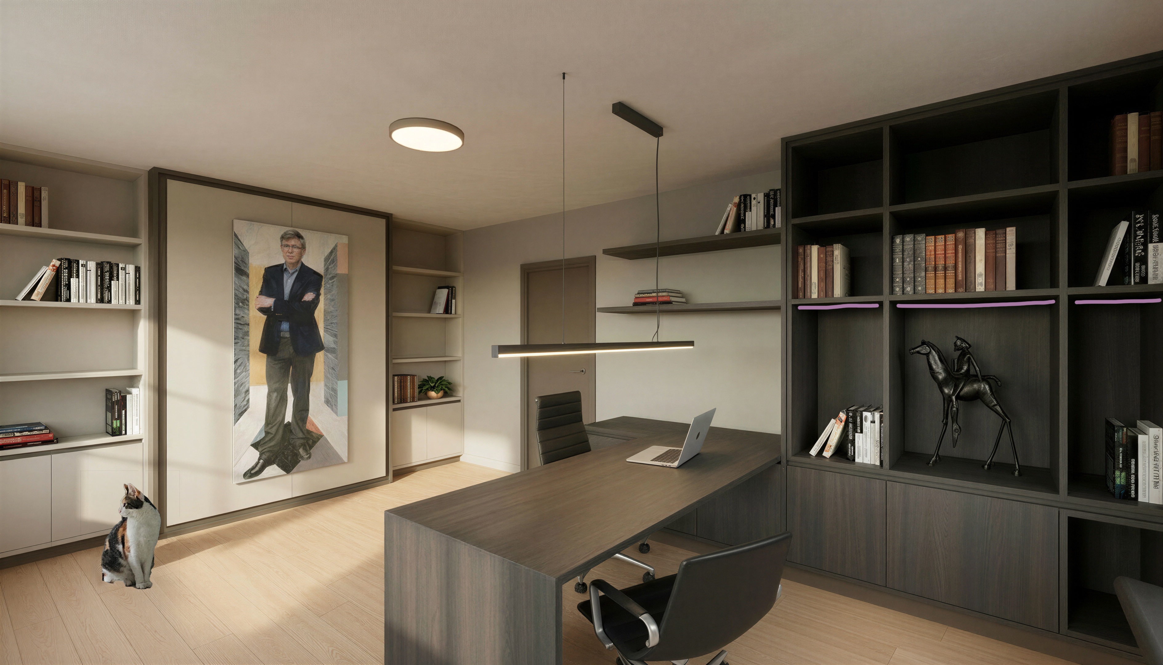 do not change the materials or colors maintain the highest quality the purple lines underneath the shelving may be light strips