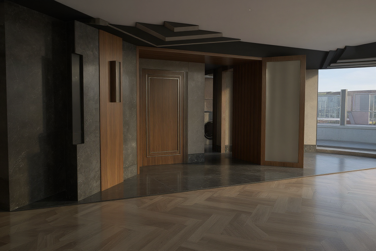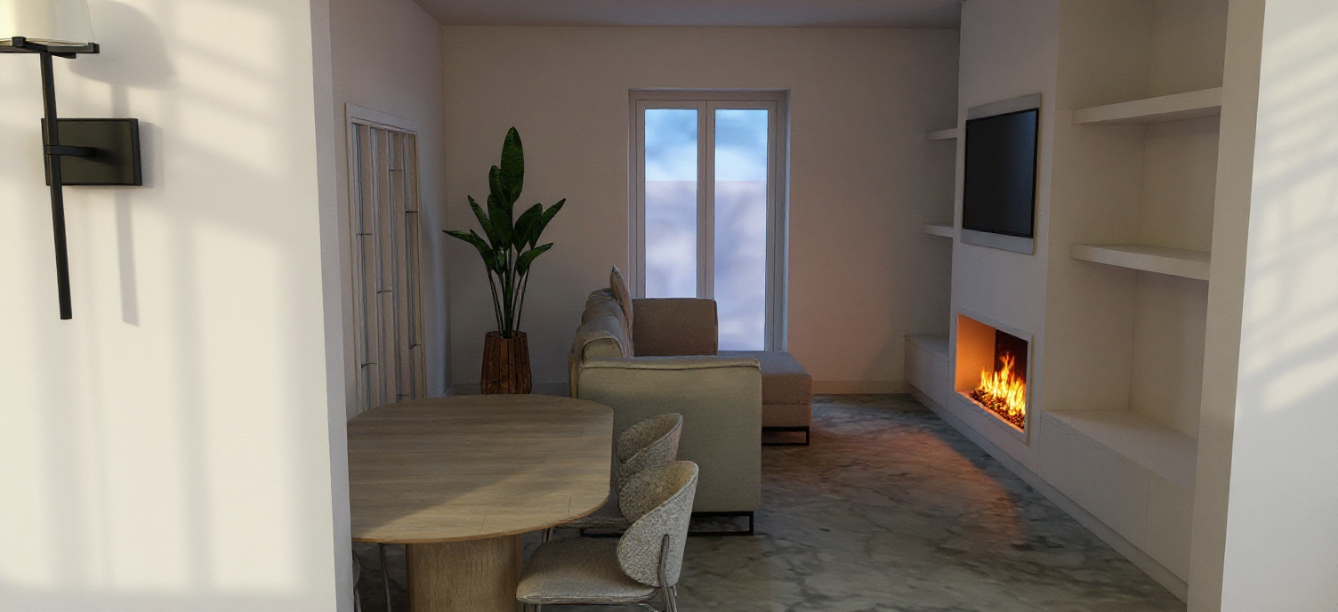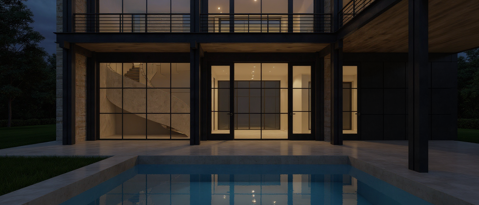 render di una scala esterna di colore bianco gradini in lamiera punzonata pilastri e elementi laterali in ferro colore struttura bianco