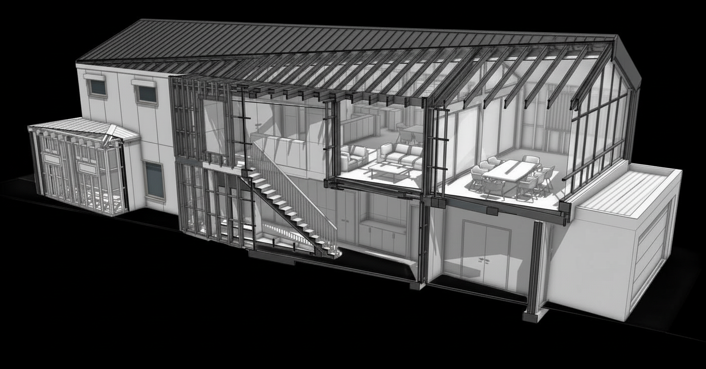 make an sketch of at house with a second floor built on the old house the first floor facade is old red tiles and the second story facade is plastered yellow colour make the house in a nordic comtempory design