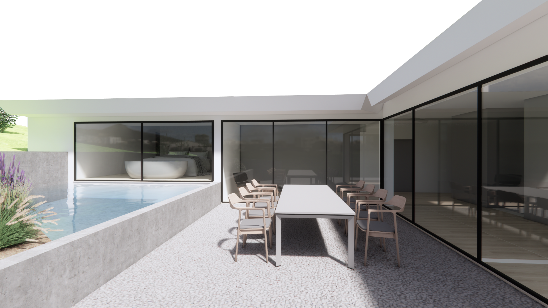 create a clean white view light materials modern white minimalistic a little bit of light wood the floor inside is light oak change nothing else no geometry or architecture changing dont change anything inside of the building but the materials architecture