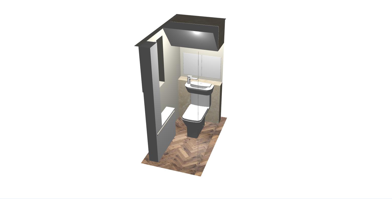 render the bathroom only and replace the toilet with a toilet with built in basin on top of the cistern make the cistern the same width depth of the basin
