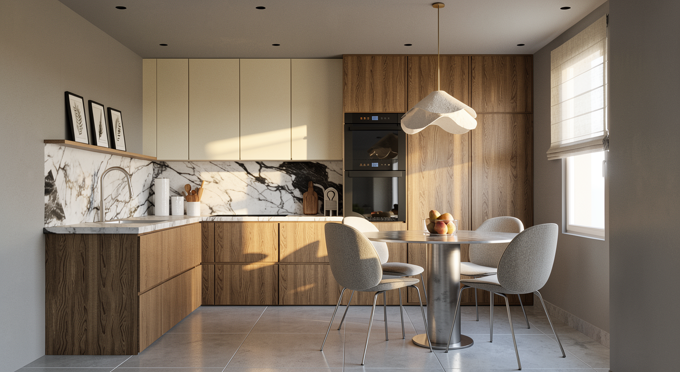 international style interior shot create a photorealistic interior visualization based strictly on the provided image do not add remove or modify any elements materials furniture or layout there is a large window on the right side that is partially visible and cut off by the frame keep it exactly in that position and do not add any new windows anywhere else do not place windows on other walls the window must be a single clean pane of glass without any internal frames divisions or mullions ensure the sunlight reflection on the glass is smooth and continuous without any grid lines or breaks maintain correct scale and proportions use physically accurate lighting with soft global illumination all lamps are turned on and emit warm light with visible light sources keep natural exposure consistent with the original image use high quality realistic textures with precise detail ensure accurate reflections and soft shadows do not apply any stylization or artistic effects the result must be strictly photorealistic and match the original scene as closely as possible do sun reflection sun on the left more light on the left architecture