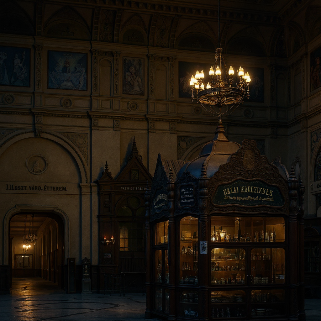 interior shot decorate a faux kitsch and gaudy living room photo opportunity space that is heavily decorated in over the top vintage christmas decorations it is furnished with a patterned vintage couch and armchair where guests can sit while they have their pictures taken there is a moss green shag pile carpet on the floor the walls are covered in red green and cream wide striped wallpaper there is a mid century modern coffee table in front of the couch on a circular orange rug there is a dark wood fireplace that is a light and has a framed picture of a cartoon pink rudolph the reindeer above it an over decorated christmas tree is in one of the corners the ceiling is painted a dark brown there is a vintage dark wood television in the corner in front of the christmas tree the ceiling and walls are all over decorated with bright colored christmas ornaments and tinsel