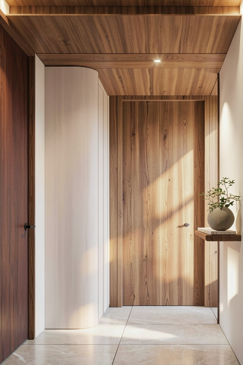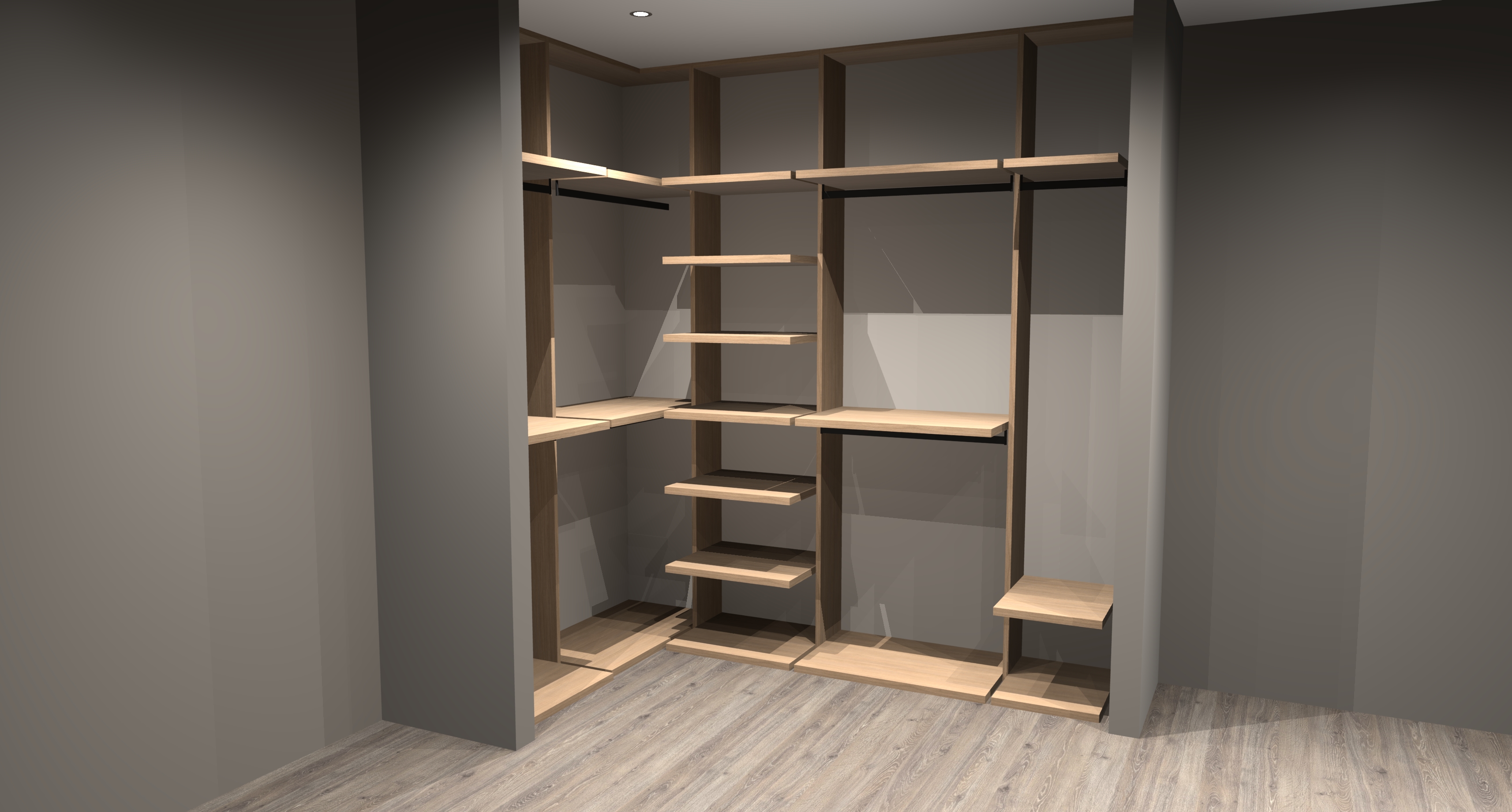 vestidor elegante moderno divisiones en madera roble natural traseras en acabado beig sueva mate iluminaci n led 3000k en costados verticales