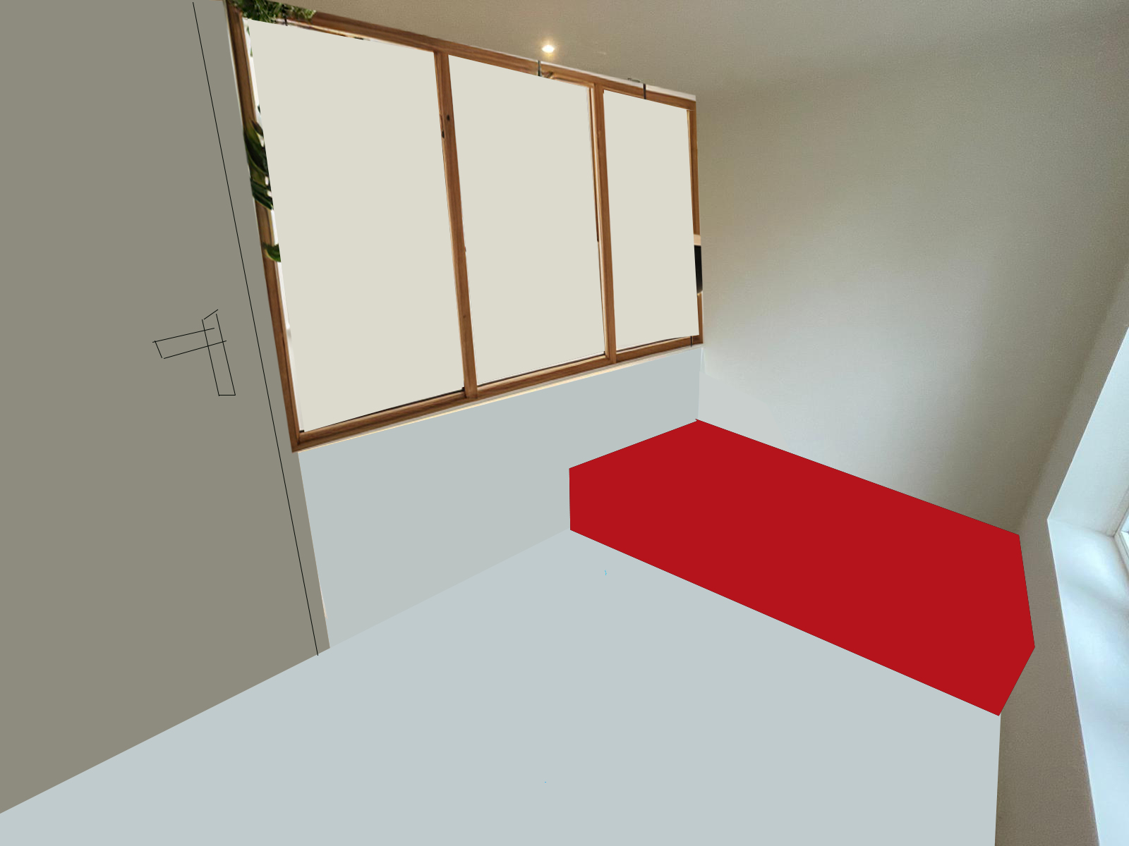 wite door on the left interior window bed 90x200 herringbone wooden floor light oak color