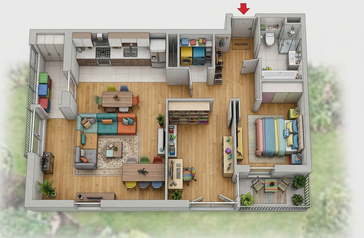 create a realistic high resollution materials image switch on lights do not redesign the geometries or styles or colors the desk is lacquer and there is a black mirror at the left keep the materials as they are physical light general atmospere