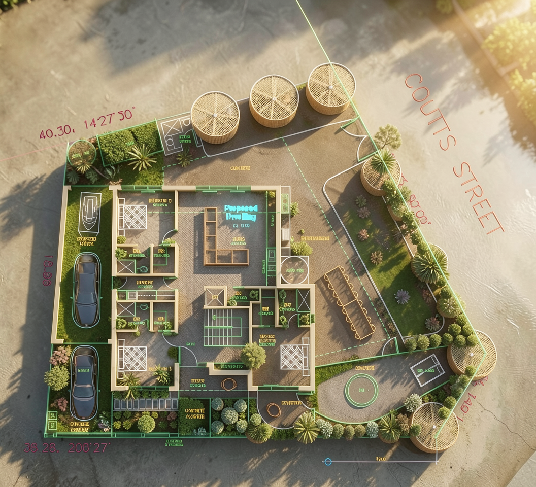 make lighting and add simple planting only to green area