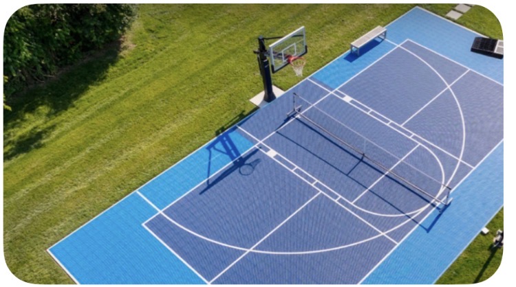 exterior shot make the pickle ball court match put the basket ball hoop on the side and match the lines of the court