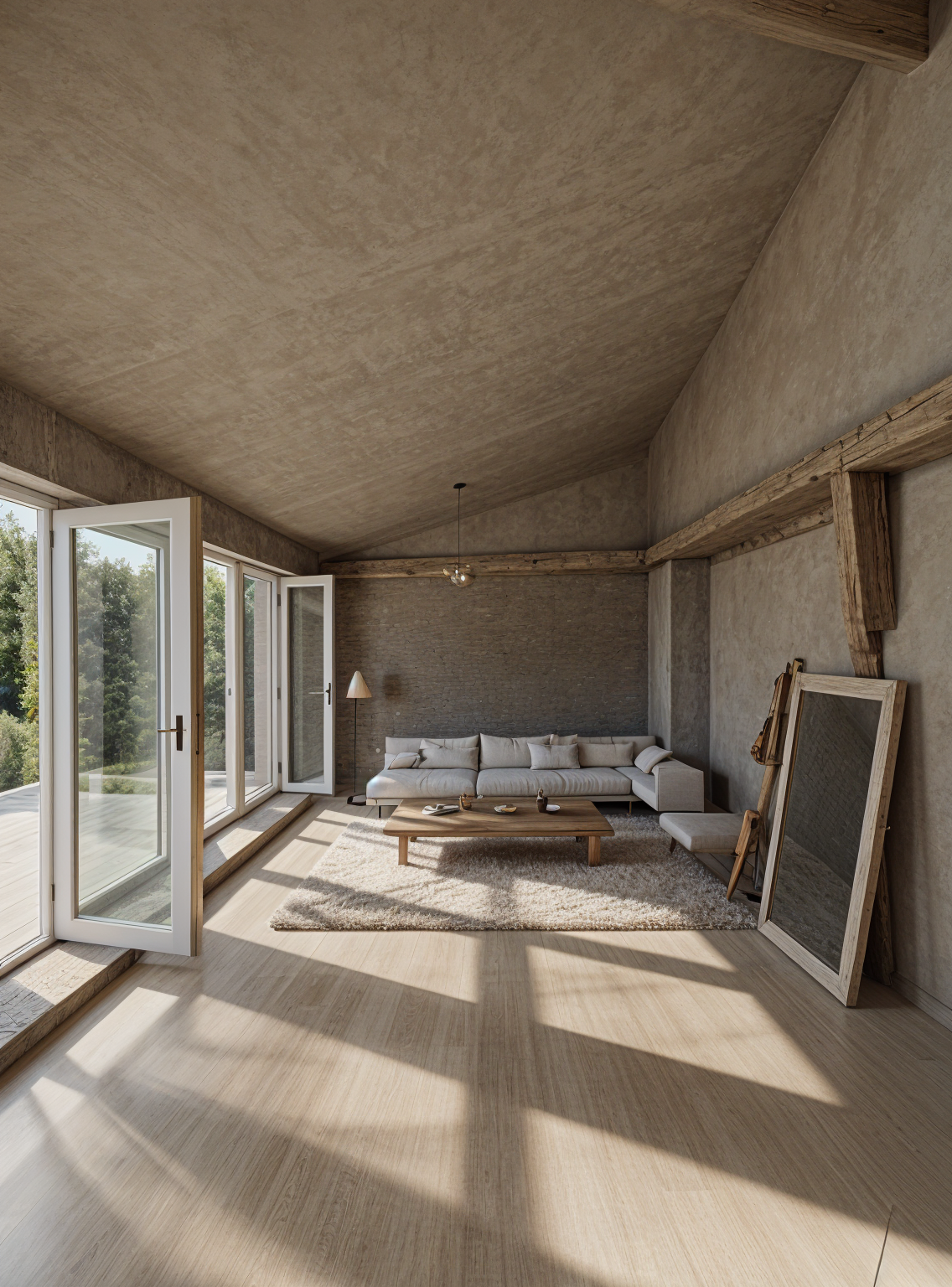 add a rustic old wooden table in the foreground