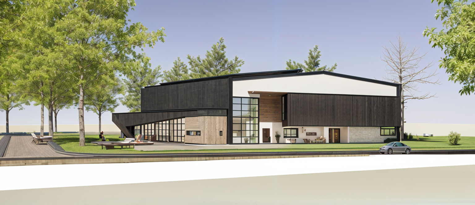 exterior shot add clouds and a blue sky architecture